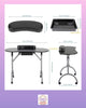 Mesa color negra de buen tamaño plegable de madera combinado con aluminio.Incluye bulto de transporte negro, gaveta y cojines mnegro.
